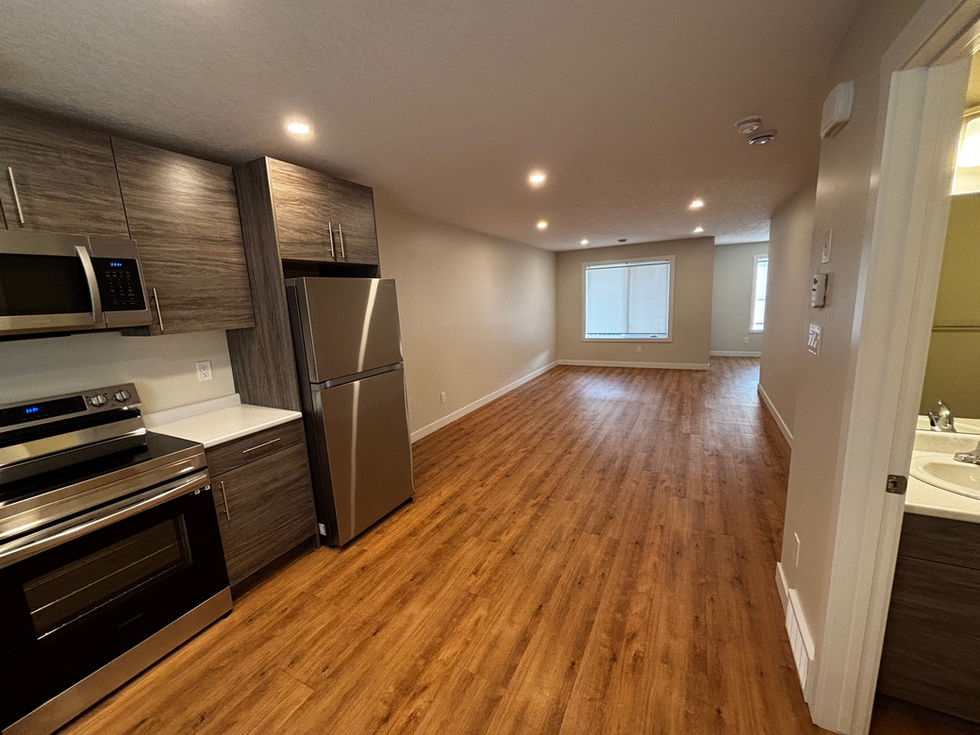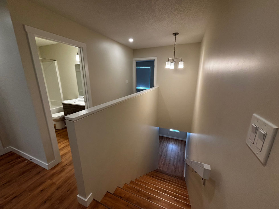 This home is three storeys complete with luxury vinyl plank flooring throughout the living space, carpets in the bedrooms, European laminate countertops, stainless steel kitchen appliances, in-suite laundry, window coverings, 3 piece ensuite in master bedroom, modern finishes and private second floor decks to breathe in the surrounding beauty of The Towns neighbourhood. Each unit also comes with one assigned, electrified, parking stall, air conditioning and a smart home security system.