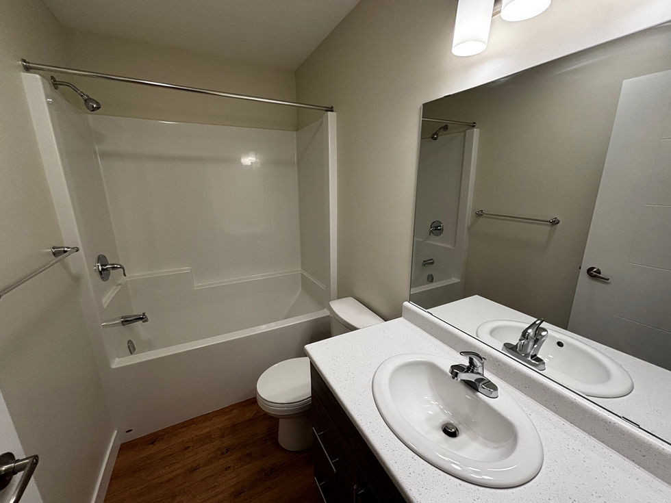 Live simply with THE PORCELAIN. This minimalist colour scheme creates simplicity without compromising quality. Fresh and bright this colour scheme integrates fresh elements with contemporary styling. Featuring luxury wide-plank vinyl flooring, concrete inspired laminate countertops with backsplash, flat panel European cabinetry with soft-close hardware and brushed nickel cabinetry pulls.